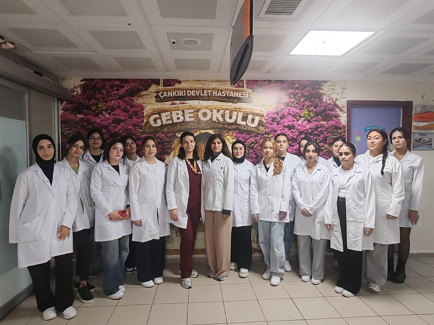1.sınıf öğrencilerimiz, EBE101 Ebelikte Temel İlke ve Uygulamalar I dersi kapsamında ilk hastane uygulamalarına Dr.Öğr.Üyesi Nükhet KAÇAR ve Arş.Gör.Bilgesu ÇELİK eşliğinde Çankırı Devlet Hastanesinde çıktılar.